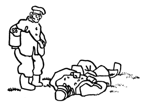 It was true. A stretcher-bearer was close beside me. Helped by the sergeant, he looked to see where I was wounded.