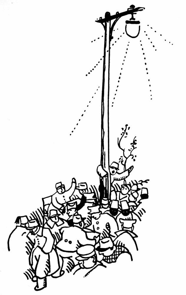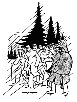 Next I had to pass by footpaths through a wood. In order not to wander in the wrong direction, now that I could not see the stars, I had to keep turning round to guide myself by the light of the rising sun.