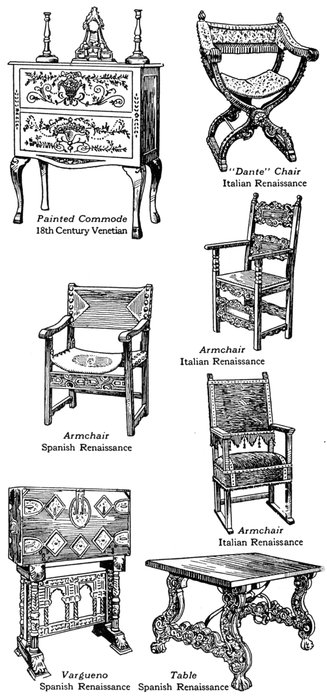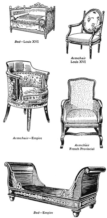 For the convenience of users of this bulletin, the subject matter has been arranged in the form of units, each of which is intended to be made the basis for a minimum of 2 hours discussion and study. With each unit is a set of stimulating questions and a brief reading list. A more detailed reading list will be found in the appendix. This bulletin, hence, may serve as a short unit course for those who can spare time for no more than 8 or 10 group meetings. Certain groups may prefer not to follow the units in the order suggested and to concentrate for a longer time on such important topics as period furniture, interior decoration, the furniture woods, or various room arrangements. For these, selected material may be used for[Pg vi] short unit courses in specialized fields. For instance, the last five units, taken together, may serve many salesmen of home furnishings as a basic course in the art of interior decoration.
