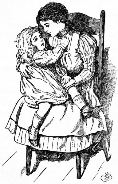 “I don’t want any on,” said Phronsie from her nest in Polly’s arms, and contentedly snuggling down. “Please don’t let her put any on, Polly,” she whispered up against her neck.