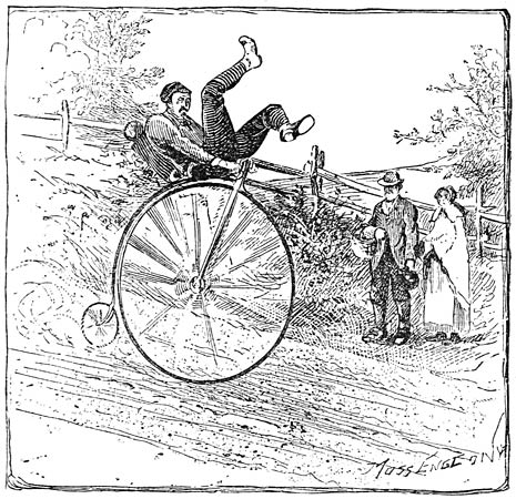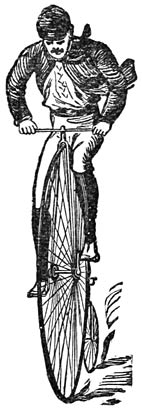 A bicycle excites more attention through Southern Ohio and West Virginia than in any State or Territory across which I have ridden. On one occasion, in Ohio, a district school was dismissed, and the schoolmaster asked me to perform a little for the edification of the scholars. I was climbing a steep hill at the time, in a broiling hot sun, and so declined, but was sorry afterwards that I did so. Crossing the Ohio River at Marietta, and following the north-western pike, east through West Virginia, over a very fair road, notwithstanding the hills, the machine was an object of curiosity to every one. In passing the farm-houses, some one was sure to give the alarm, and in some mysterious way the whole household was instantly aware that the opportunity of a lifetime was at hand, and they were bound to improve it. Out would come “Paw” and “Maw,” and four or five children, and generally three or four guests, for the people are great visitors in this section. And after I had passed they would all laugh, not derisively, but because they were pleased. The grown folks really acted childish about the machine. [237]