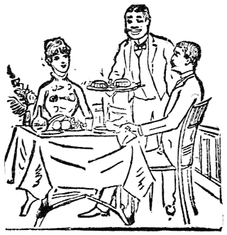 Two turnpike companies once started to build a pike from Indianapolis to Lafayette, Ind., seventy miles, but when within two miles of each other there was a disagreement between the two companies and that intervening piece of road has never been finished. Although there is a great deal of travel over this splendid pike there is not public spirit sufficient to fill up this gap of two miles, and for years the traveling public have driven off the ends of these two turnpikes [58]into two miles of the deepest mud fordable. In Illinois there are no pikes even, all dirt roads; roads that are to-day in the same condition they were when the country was first settled; not a day’s work has ever been expended upon them. I passed farm after farm on which were fine houses, large substantial barns and hundreds of heads of stock, and every indication of a rich soil and worldly prosperity, and yet the road directly in front of these farm-houses has remained in such a condition for years, that for six months out of the twelve it is really dangerous for man or beast to travel after dark. I stopped one night in a fine brick house that in the East would cost four or five thousand dollars, and yet this house could only be reached by a lane in which the mud for six months in the year was hub deep, and a fine fat sow with a litter of pigs had full possession of the front yard, if such a mud hole could be called a yard. Another case I remember where the houses, barns, and stock indicated the farmer’s prosperous condition, and yet there was no well, nothing but rain water to drink. The fact is, all these things—and I could keep on mentioning them to the end of the chapter—serve to illustrate the intense Western desire for display to the neglect of comfort. The stately domes of their numerous court-houses seen on all sides make a big show. Their large barns with the farmer’s name painted on the side in red letters or shingled into the slate roof advertise the owner’s name and financial standing. Whatever is above ground, whatever can be seen from a distance, whatever makes a great display receives the cordial support of the average Westerner, but when you look for a fine country road, free of toll gates, or a good, deep well, or a nice cool cellar, or anything, no matter how much it might add to the personal comfort of the possessor, but which is below the surface or unseen from the surrounding country, [59]you may look in vain for these evidences of a moderately high state of civilization. The diet of Western families is simply abominable. It is pork, fried pork, every meal. Their meals are as monotonous as their scenery. A farmer, rich in money, lands, and houses, will live for weeks on pork, when beef, mutton, turkey, and chicken are in great abundance on all sides and so cheap as to be almost unsalable. And yet, probably because their stomachs are out of sight and the satisfying effect of a good square meal is quieting and not of the spread-eagle effect, the farmers live upon the freshest and plainest sort of food. If the Western stomach could be inflated and placed in some commanding position it would be supplied with the choicest viands and the farmers would pour out their money to fill it to overflowing.