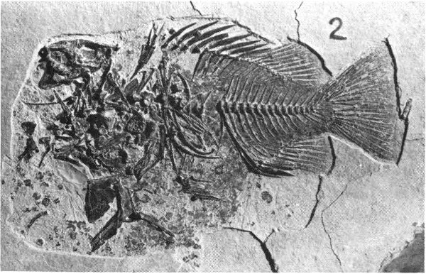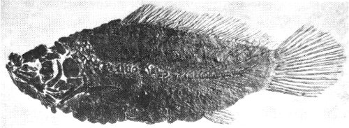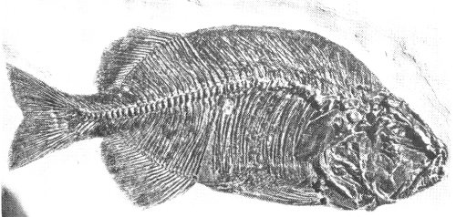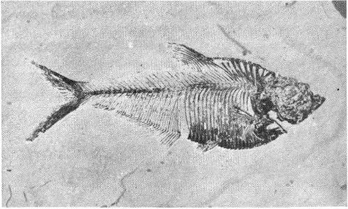 Fig. 24. Priscacara, a small bass that is common in the Fossil Butte fish beds. Length of original, 13 cm. Collection of University of Wyoming.