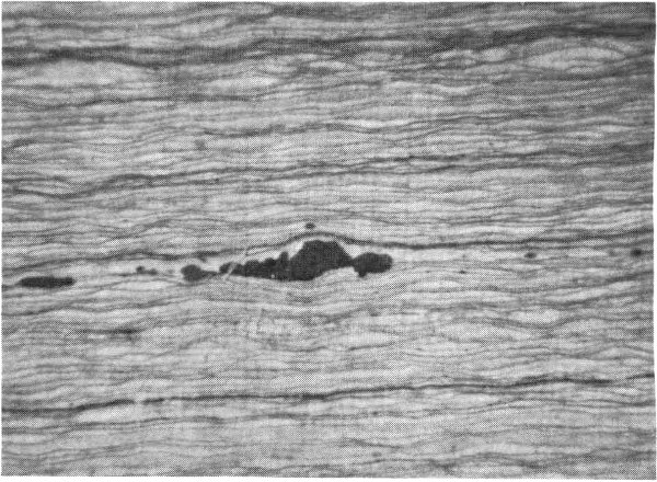 Fig. 28. A section of shales from the fish beds showing thin laminae that are interpreted as varves. Enlarged six times.