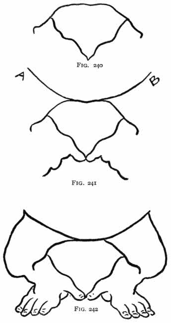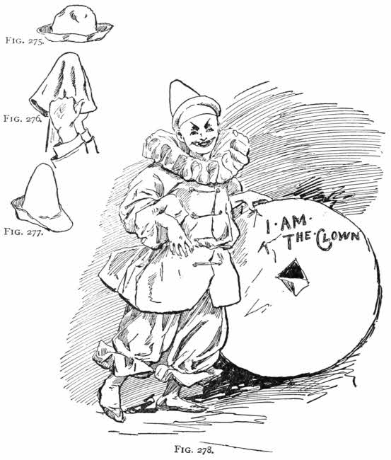 upon a white background, will be found to be most effective. Giants may be made by taking large-sized prints of men, clipping off their heads and replacing the latter with heads of smaller men. Dwarfs may be made by using the small[281] prints of men, and substituting big heads for the ones originally belonging to the figures.