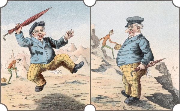 En route pour les hauts plateaux, M. Baboulifiche et Papavoine éprouvent de grandes difficultés, surtout le Président, qui a bien du mal à gravir ces pentes escarpées.