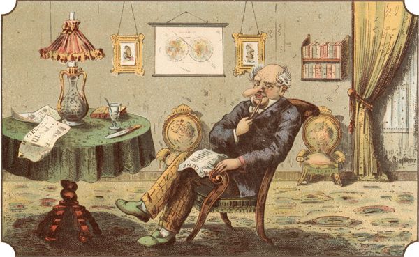 Sur ce, M. Baboulifiche va se coucher et se fait servir une infusion de violettes largement additionnée d'eau de fleurs d'oranger quadruple, pour essayer de rendre le calme à son système nerveux abominablement surexcité.