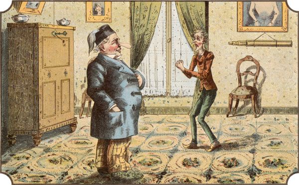 Monsieur Baboulifiche fait part de ses intentions à son domestique Papavoine et lui donne l'ordre de se préparer à l'accompagner dans la Lune, vers laquelle il compte se diriger dès le lendemain, au point du jour.—Ébahissement désespéré de Papavoine.