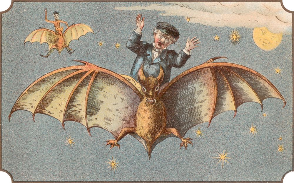 Course vertigineuse de M. Baboulifiche et de son domestique Papavoine à travers les espaces célestes, sur le dos des chauves-souris lunaires.