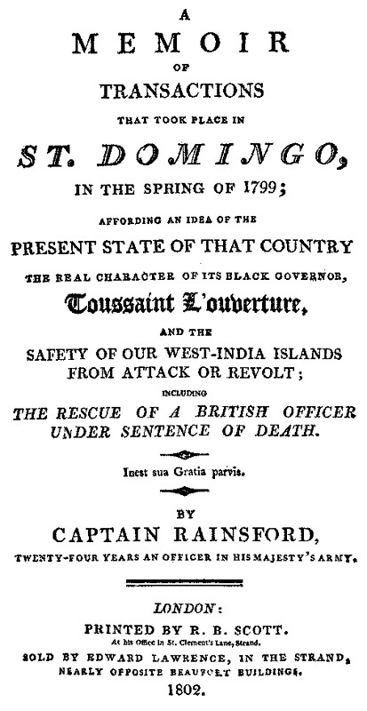 Title: A Memoir of Transactions That Took Place in St. Domingo, in the Spring of 1799