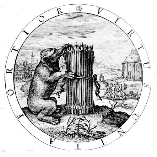 | Ill 43 Bk 3 | VIRTUS UNITA FORTIOR. Virtus unita fortior Virtue is stronger when united |