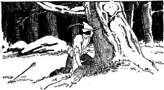 One fellow dropped kicking in the dust. The archer, whom Charles hit, clapped his hand to his side and sank down on the grass at the edge of the road. My fellow was more fortunate, for, although I had taken a steady aim at the region of his heart, he made a sudden move as the arrow left the bow. I caught him above the elbow in the fleshy part of the arm. Although his wound was not deadly, it must have stung him with pain, for he uttered a scream. He threw his bow at his feet and with his arm limp at his side shuffled off to tear his shirt into strips to stop the flow of blood.