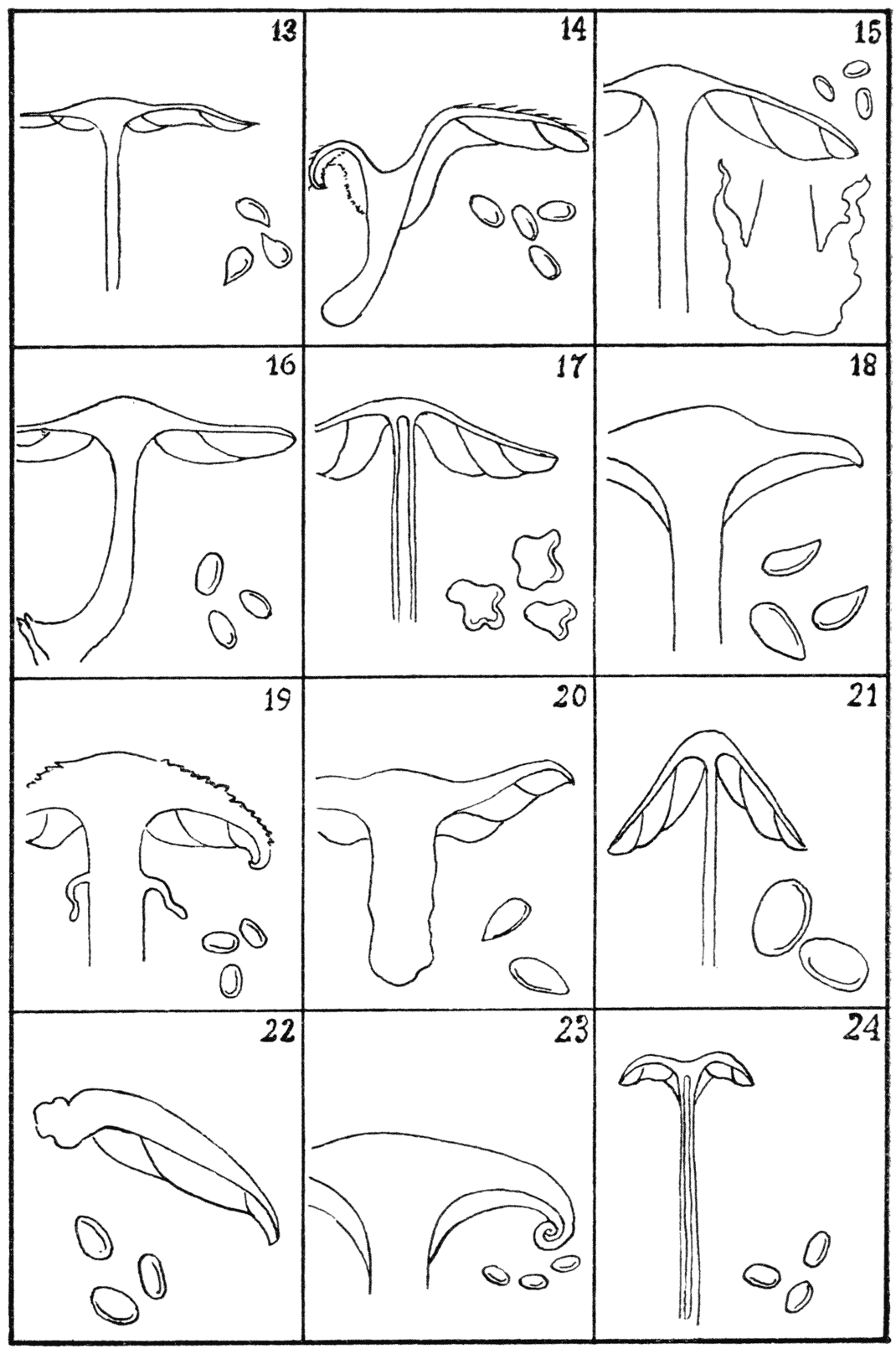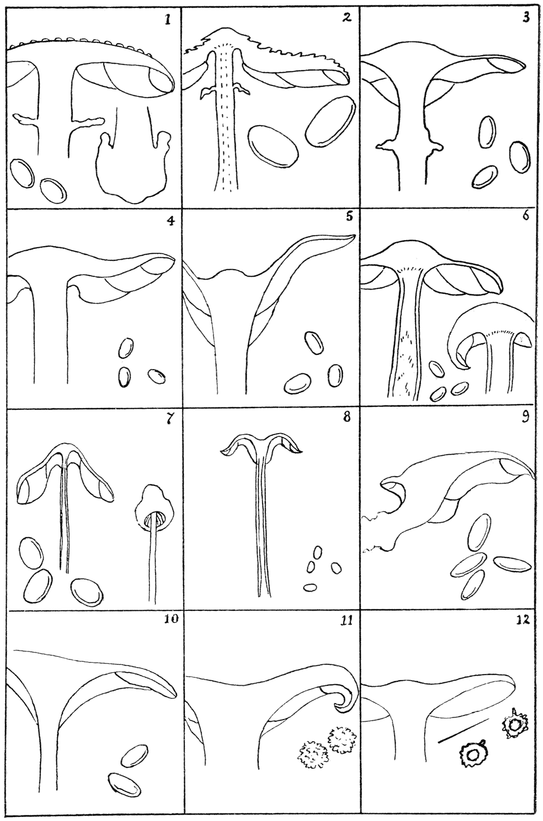 Zulke organismen zijn nu de roestzwammen ook; zijn zij al niet zoo griezelig als de zooeven genoemde, de schade, die zij aan de cultuurgewassen, vooral de granen, berokkenen is onberekenbaar groot en hare wegen zijn soms even onnaspeurlijk. Wie zal b.v. de aecidium-generatie van Melamspora repentis, die op kruipwilg leeft, op de gevlekte Orchis (Orchis maculata) zoeken [21]en van een andere wilg-schimmel op ’t sneeuwklokje; wie zou denken, dat de roest op het boschmuur (Stellaria nemorum) en de heksenbezems op de Zilverspar (Abies pectinata) het gevolg van éénzelfde schimmel in zijn beide generaties zijn? En toch is het eigenaardig om op te merken hoe de mensch soms half-instinktief dingen schijnt te kunnen beseffen, als het inzicht er nog lang niet aan toe is. Het is bekend, dat reeds in 1720 een Engelsche boer heet water op de wortels van een berberis van zijn buurman goot, omdat hij die plant bij zijn koren niet duldde. En reeds in 1755 werd er in Massachusetts een wet uitgevaardigd voor de uitroeiïng van de berberis in de nabijheid van korenvelden.