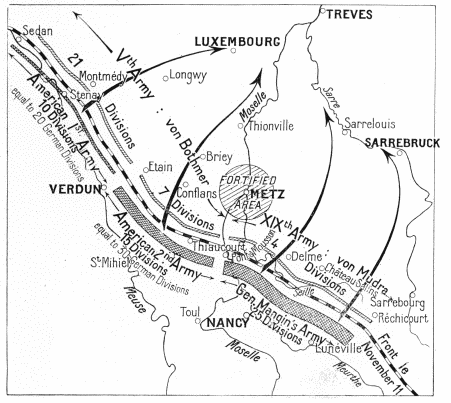 Marshal Foch, also, expressed the greatest possible admiration for the way the American troops fought their way to the great victory at Saint-Mihiel. In describing the battle Marshal Foch said: “This was where the Americans for the first time showed their worth. This is where we were able to judge of these admirable soldiers, strong in body and valiant in soul. In one swoop they reduced the famous salient, which during so long we did not know how to approach.”