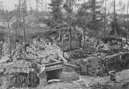 The German Government had on several occasions given the French Government to understand that they would disapprove the erection of fortifications in Woëvre. On the other hand, the Germans unceasingly strengthened their own frontier from Metz to Thionville, increasing the perimeter of the entrenched camp of Metz from 25 to 90 kilometres and erecting ten new forts. All the attacks against the Meuse Heights started from this vast entrenched camp, which, for four years, also furnished the German lines of St. Mihiel with troops.