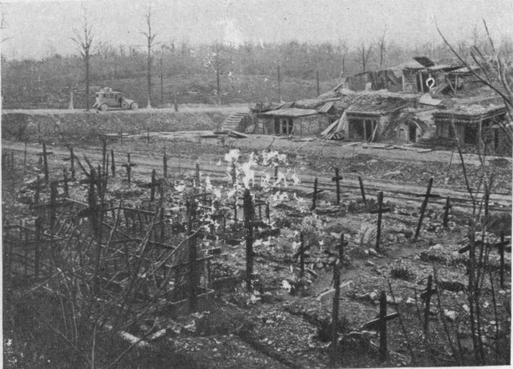 In April, 1915, French troops captured Hills 219 and 221, Hôpital Farm (formerly belonging to Order of St. Jean de Rhodes) and Haut-Bois Farm, reaching the immediate vicinity of the town, without, however, entering it.