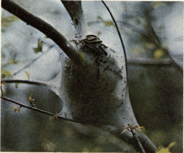 Control on ornamental, fruit, and shade trees is achieved by pruning off and burning the tents containing the caterpillars.
