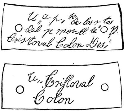 The originals of the letters-patent, and other evidences of privileges granted by the Spanish monarchs to Columbus, were preserved by him, and now constitute a part of the collection of the Duke of Veraguas, in Madrid. In 1502 Columbus caused several attested copies of them and of a few other documents to be made, raising the number of papers from thirty-six to forty-four. His care in causing these copies to be distributed among different custodians evinces the high importance which he held them to have, as testimonials to his fame and his prominence in the world’s history.[iv] One wishes he could have had a like solicitude for the exactness of his own statements. Before setting out on his fourth voyage, he intrusted one of these copies to Francesco di Rivarolo, for delivery to Nicoló Odérigo, the ambassador of Genoa, in Madrid. From Cadiz shortly afterwards he sent a second copy to the same Odérigo. In 1670 both of these copies were given, by a descendant of Odérigo, to the Republic of Genoa. They subsequently disappeared from the archives of the State, and Harrisse[15] has recently found one of them in the archives of the Ministry of Foreign Affairs at Paris. The other was bought in 1816 by the Sardinian Government, at a sale of the effects of Count Michael-Angelo Cambiasi. After a copy had been made and deposited in the archives at Turin, this second copy was deposited in a marble custodia, surmounted by a bust of Columbus, and placed in the palace of the Doges in Genoa.[16] These documents, with two of the letters addressed (March 21, 1502, and Dec. 27, 1504)[17] to Odérigo, were published in Genoa in 1823 in the Codice diplomatico Colombo-Americano, edited with a biographical introduction by Giovanni Battista Spotorno.[18] A third letter (April 2, 1502), addressed to the governors of the Bank of St. George, was not printed by Spotorno, but was given in English in 1851 in the Memorials of Columbus by Robert Dodge, published by the Maryland Historical Society.[19]