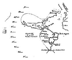 [1591] [It will be remembered that the original Bull of 1493 fixed the meridian 100 leagues (say 400 miles) west of the Azores or Cape De Verde Islands, supposing them to lie north and south of each other; whereas the limit in force after June 7, 1494, was 370 leagues (say 1,080 miles) west of the Azores, since Portugal, complaining of the first limit, had negotiated with Spain for a new limit, the Pope assenting; and this final limit was confirmed by a convention at Tordesillas at the date above given. Cf. Popellinière, Les trois mondes, Paris, 1582; Baronius, Annales (ed. by Brovius, Rome), vol. xix.; Solorzano, Politica Indiana.—Ed.]