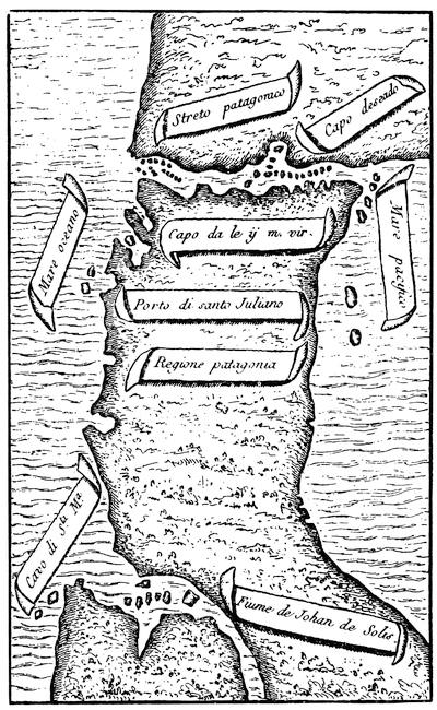 [1610] The identification attempted on the map (taken from the Hakluyt Society’s volume on Magellan) is one of many conjectures.