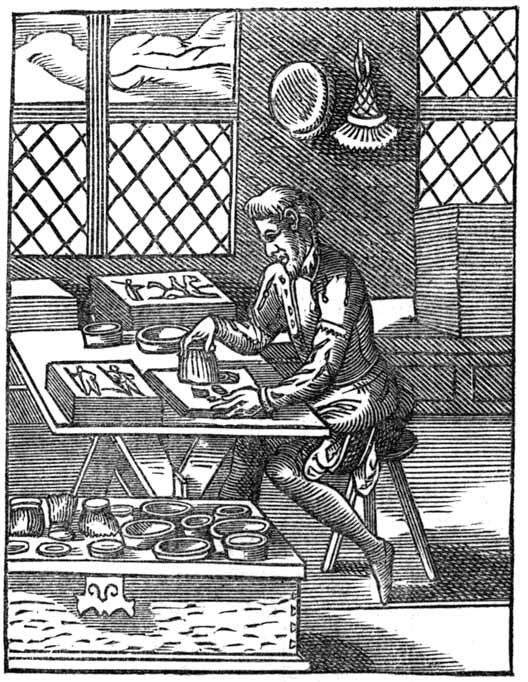 389 Bernard says that sticks of wood were used by Christopher Plantin, “king of printers.” It is characteristic of the taste of his time, that Plantin had sticks of wood, although he boasted that some of his types were cast in [matrices of] silver.