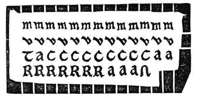 378 It has been suggested that these distinct bodies were founded in sand moulds; that a new pattern for the body was made every time a new font was cast; and that the irregularities in body are the results of unintended or undetected variations in the pattern. But this hypothesis cannot be accepted. The small bodies, the sharp edges, close fitting-up and even lining of the types, are peculiarities which could not have been produced by a sand mould, nor by a mould of any plastic material.