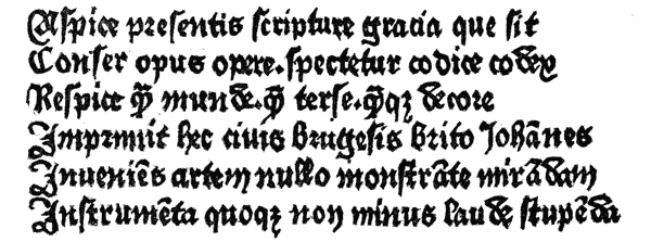 This was not the first restriction imposed on the liberty of the printers, for the University of Cologne in 1479 had assumed the right to control the printing of books by Quentell and Winters.