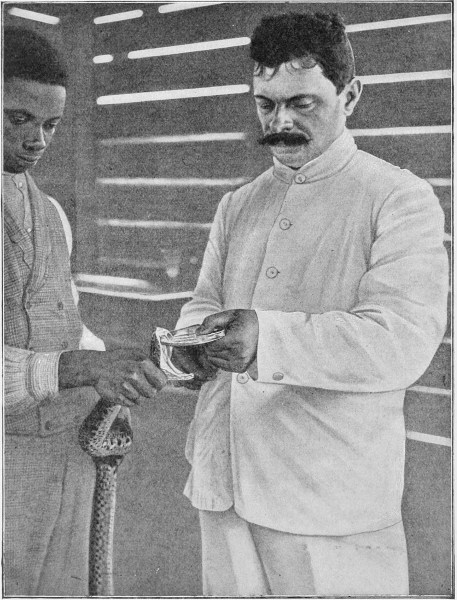 In the month of October, 1891, during the rains, a village in the vicinity of Bac-Lieu, in Lower Cochin-China, was invaded by a swarm of poisonous snakes belonging to the species known as Naja tripudians, or Cobra-di-Capello. These creatures, which were forced by the deluge to enter the native huts, bit four persons, who succumbed in a few hours. An Annamese, a professional snake-charmer in the district, succeeded in catching nineteen of these cobras and shutting them up alive in a barrel. M. Séville, the administrator of the district, thereupon conceived the idea of forwarding the snakes to the newly established Pasteur Institute at Saigon, to which I had been appointed as director.