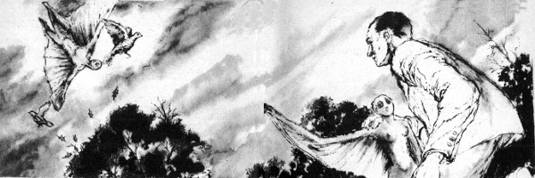 The fact was that I had something more in the lab than I had bargained for. I had aimed only at a gliding mammal a little more efficient than the Dusky Glider of Australia, a marsupial. Even in the basically mutating colony, there had been a decidedly simian appearance in recent years, a long shift from the garbage-dump rats I had started with. But my first volplas were shockingly humanoid.