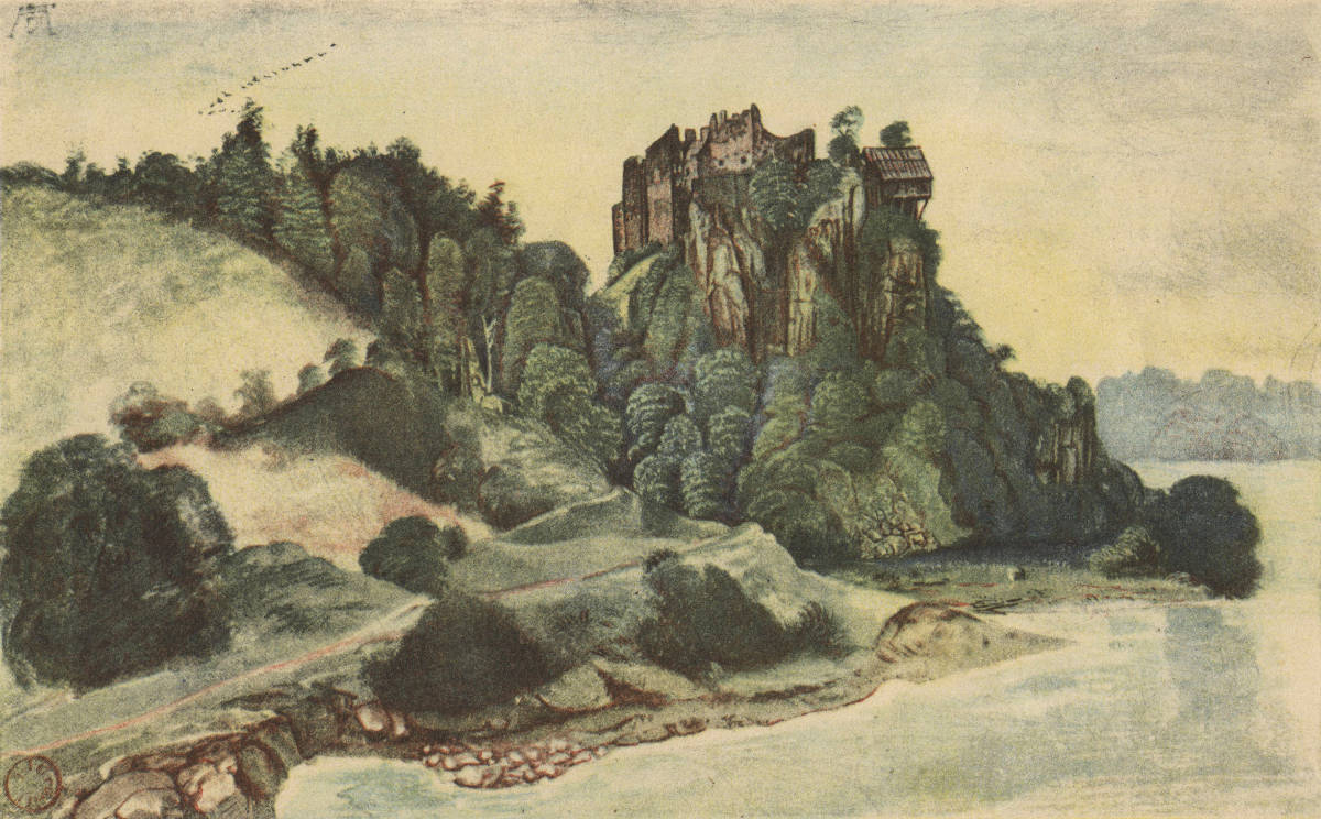 Zu alledem aber, wird man einwenden, hätte eine einfache Zeichnung mit der Feder oder dem Stift auch gereicht. Am auffallendsten seien doch gerade die Farben, die malerischen Zusammenhänge, wie sie sonst nicht bei Dürer wiederkehren. Allerdings wird hier die ganze Frage am brennendsten. Warum steht Dürer mit diesen Aquarellen so isoliert unter seinen Zeitgenossen, und warum hat er, wenn ihm wirklich eine Landschaftskunst, losgelöst von Historie und Porträt, am Herzen gelegen hat, kein einziges ausgeführtes Bild in Öl oder Tempera hinterlassen, wie wir sie von Altdorfer und der Donauschule kennen?