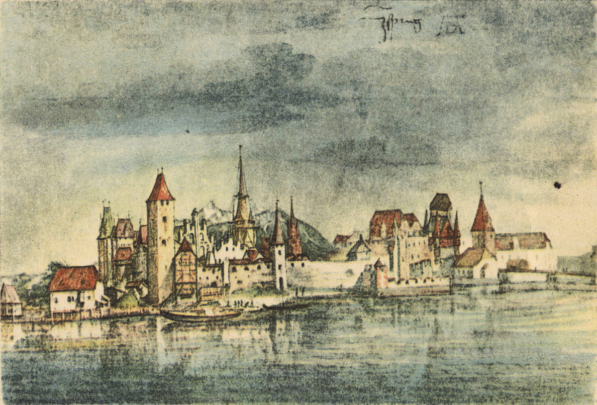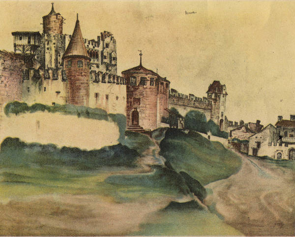 Beides dürfte weit über das Ziel hinausgeschossen sein. Man muß sich zweierlei vergegenwärtigen. Einmal handelt es sich bei allen Landschafts-Aquarellen – wie auch bei den eigentlichen Zeichnungen – um Studien und nicht um fertige Bilder. Nur ein Impressionist, in dessen Kunst das scheinbar Unfertige zum Endgültigen erhoben wird, kann in bezug auf die künstlerische Tat die Aquarelle auf die gleiche Basis bringen wie irgendeine ausgeführte Bildtafel. Dürer hat in ihnen gewiß viel weniger gesehen. Hatte ihn eine besondere Linie gereizt, irgendein Gebirgszug oder eine landschaftliche Formation, so hielt er das Gesehene rasch fest, um es später vielleicht einmal als Motiv zu verwerten. Zum zweiten aber hat er eine Art topographisches Interesse gehabt, das Verlangen, Orte, die er auf Reisen berührte, ihrer Eigentümlichkeit wegen sich aufzuzeichnen. Vielleicht entstand auch manches aus der stolzen Freude, sich Belege für seine Reiseroute zu verschaffen, alles Dinge, zu denen man ja die literarische Parallele in seinen Tagebuchaufzeichnungen findet. Wir verdanken dieser Gründlichkeit unter anderem den Erweis einer frühen Italienreise.