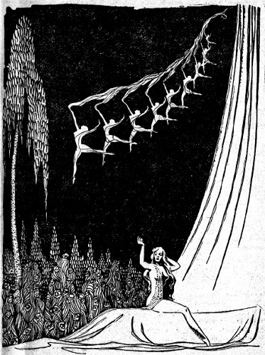 When they reached the bower, Scientist Norcross expected that Drumstetter would sleep there after all, for it was an exceptionally pleasant design. The force field was night, and the sky was filled with adapted creatures from Mars dancing to their susurrate music, and the air was permeated with the bitter-sweet and exciting scent of a Venusian lake, the very odor of romance. In the background was the song of the sea.