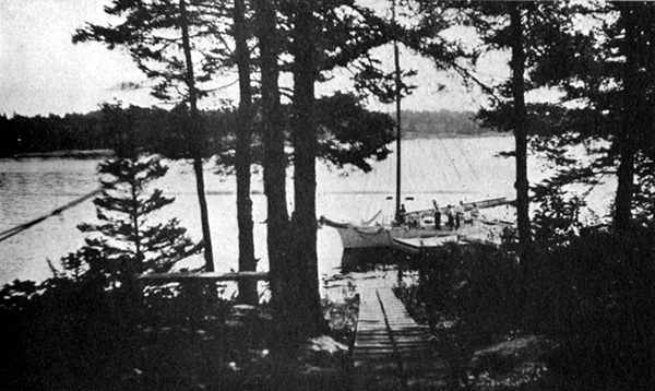 While the four boys excitedly retailed the capture of their prize, the launch was making good speed across West Penobscot Bay to a group of three small islands lying near the fourteen-mile-long shore of Islesboro, which divides the bay into east and west. The boys’ summer camp was on the most northerly isle which contained about eight acres of land, high, rocky, and closely wooded with fir and spruce.