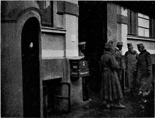 As far as one can learn there was no particular pinch in the town until everything was nearly gone, and then conditions became suddenly acute. It is improbable that economy was enforced in the early dispensing of food supplies, and the husbanding of such resources 29 as were at hand. When the crisis came, it fell first upon the unfortunate soldiers, with whom their officers seem to have little in common. Transport horses were killed first, and then the cavalry mounts went to the slaughter house to provide for the garrison. The civilians next felt the pinch of hunger, and every live thing that could nourish the human body was eaten. Cats I am told were selling at ten kr. each and fair-sized dogs at twenty-five kr. The extraordinary part of the story is that according to evidence collected from many sources the officers never even changed their standards of living. While the troops were literally starving in the trenches, the dilettantes from Vienna, who were in command, were taking life easily in the Café Sieber and the Café Elite. Three meals a day, fresh meat, wines, cigarettes and fine cigars were served to them up to the last.
