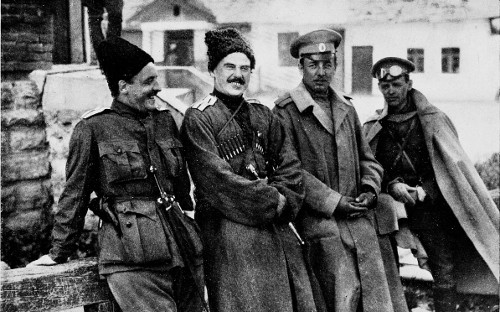 Russian occupation of Przemysl. Austrian officers pay a last visit to the Russian head-quarters before leaving for Lwow.