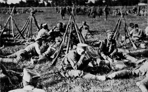 Austrian prisoners resting by the roadside during their march from Przemysl.