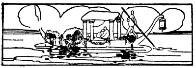 Suenan a lo lejos tres bombas. Va a comenzar la procesión. El cielo se ha azulado aún más, como un cielo napolitano; y el agua está como el cielo, y es como un milagro azul que todo lo envolviera. «Je suis hanté: Azur! azur! azur!...» Veo venir algo que suscita en mi mente reminiscencias de Venecia, de una Venecia antigua y legendaria. Hasta el acento con que hablan los marineros que pasan bajo el balcón a que me asomo me parece veneciano. Y la ría, que es un lago suizo a veces, se me antoja ahora una especie de Canalazzo. Se acerca más y más la procesión en barcas. Entre las pequeñas de los pescadores viene, como un Bucentauro, gallardamente, el vaporcito en que está el santo. Y en el vapor del santo, y en otros que atrás vienen, y en las barcas de los pescadores, y en otras llenas de vecinos y curiosos forasteros, todo es una fiesta de banderas y banderolas, amarillo y rojo. ¡España! ¡España! ¡España!