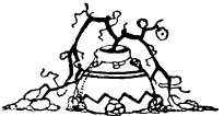 —Es verdad—contestó—. Eso fué otra noche. Y digo sería el «diaño»; aunque no sé francamente si sería él... Usted verá. Y me narró sus aventuras de otra noche. Volvía a su casa, ya tarde, y cerca de las ruinas del Castillo de San Martín oyó que su padre le llamaba desde una barca para que le llevase a su casa. Acercóse, y vió una figura blanca, de{232} pie.—Vamos, padre; dijo Evaristo.—Ya voy—respondió la figura blanca—. Pero no se movía. Y Evaristo se cansó de llamar, y la figura seguía diciendo «ya voy». Hasta que Evaristo vió que aquello era cosa diabólica y se acercó más y descargó un remazo sobre la figura. La cual se deshizo como un humo.