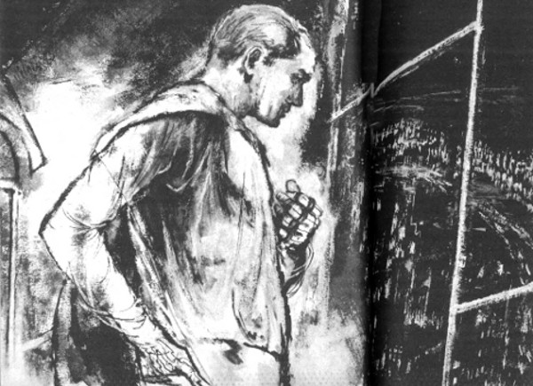 Soft as the voice of a mourning dove, the telephone sounded at Rufus Sollenar's desk. Sollenar himself was standing fifty paces away, his leonine head cocked, his hands flat in his hip pockets, watching the nighted world through the crystal wall that faced out over Manhattan Island. The window was so high that some of what he saw was dimmed by low clouds hovering over the rivers. Above him were stars; below him the city was traced out in light and brimming with light. A falling star—an interplanetary rocket—streaked down toward Long Island Facility like a scratch across the soot on the doors of Hell.