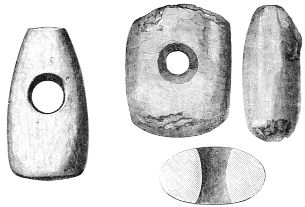 Of Peculiar Forms — Some of them Weapons, not Tools — Conical, Rounded at each End — Made from Pebbles with Natural Holes — Of an Ornamented Character — Made from Quartzite Pebbles — Purposes to which Applied — Mauls for Mining Purposes — Of Wide Range — Net-sinkers . . . 217