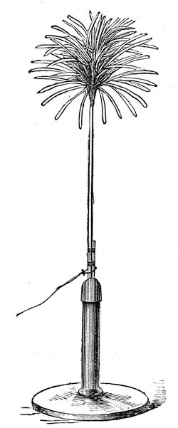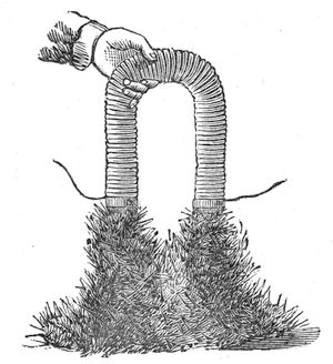 It is my purpose to-day to make you acquainted with some of these powers; not the vital ones, but some of the more elementary, and, what we call, physical powers: and, in the outset, what can I do to bring to your minds a notion of neither more nor less than that which I mean by the word power, or force? Suppose I take this sheet of paper, and place it upright on one edge, resting against a support before me (as the roughest possible illustration of something to be disturbed), and suppose I then pull this piece of string which is attached to it. I pull the paper over. I have therefore brought into use a power of doing so—the power of my hand carried on through this string in a way which is very remarkable when we come to analyse it; and it is by means of these powers conjointly (for there are several powers here employed) that I pull the paper over. Again, if I give it a push upon the other side, I bring into play a power, but a very different exertion of power from the former; or, if I take now this bit of shell-lac [a stick of shell-lac about 12 inches long and 1½ in diameter] and rub it with flannel, and17 hold it an inch or so in front of the upper part of this upright sheet, the paper is immediately moved towards the shell-lac, and by now drawing the latter away, the paper falls over without having been touched by anything. You see—in the first illustration I produced an effect than which nothing could be commoner—I pull it over now, not by means of that string or the pull of my hand, but by some action in the shell-lac. The shell-lac, therefore, has a power wherewith it acts upon the sheet of paper; and as an illustration of the exercise of another kind of power, I might use gunpowder with which to throw it over.
