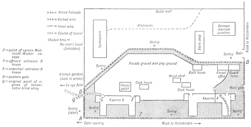 Almost exactly two years ago, as I write these lines, the famous Holzminden Tunnel became history. Even then, when the sordid camp was still lending (and seemed likely to lend in perpetuum) its grey colour to every aspect of life, when sense of proportion was practically dormant and racial animosity intensified to the highest pitch, it was impossible to overlook the peculiar dramatic proprieties of the event. Some day, it was felt, this story might be fittingly told.