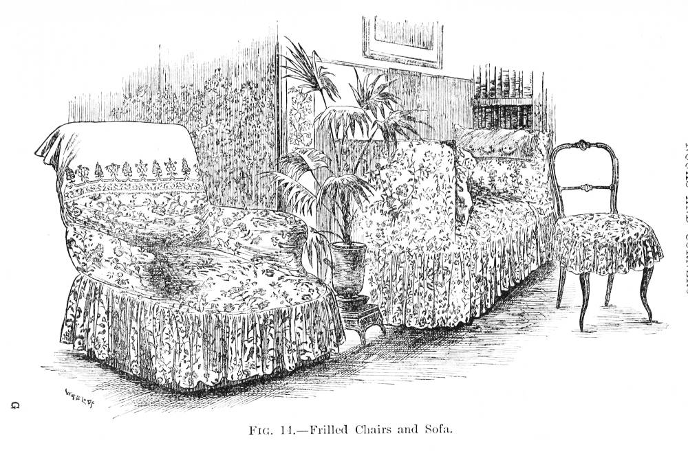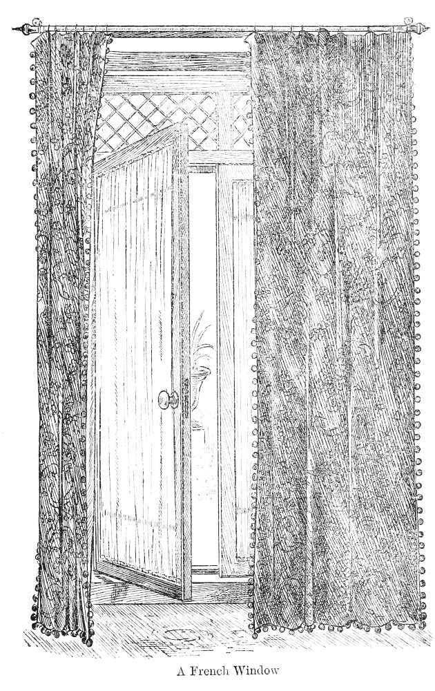 Formerly people rather scorned the idea of being ‘house-proud’ in the same manner in which all are nowadays. Their house-pride was merely expressed in the amount of gilding compressed into a single room; in the thickness of their carpets, the heaviness of their draperies, and the general costliness of the plenishing, and the amount of money these things had cost was far more often spoken of than anything else; while the name of the upholsterer was mentioned, not as a guarantee that taste and skill had been called into action, but as a proof that money in this case had not been an object. Formerly, did I say? Alas! cases still exist of this heavy and depressing style of thing! Money is poured out like water on carpets that are nightmares, and on papers that are as absolutely meaningless as they are ugly, and the despair of anyone who is called in, as I am constantly, to mitigate the horrors of some gigantic monument of bad taste and lavish expenditure.