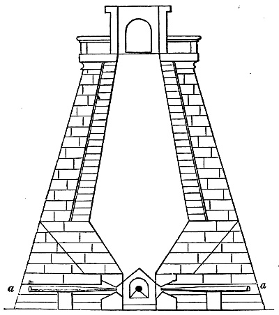39. Mr. Samuel Plimsoll (‘Letters on the Iron Trade,’ Times, February 10, 1868) informs us that in the Belgian coal mines the ventilation is carried on in a more economical and effective manner. Here no furnaces are lighted at the bottom of the upcast, because one-twentieth of the coal required for a furnace will make steam for an engine to work fans which act somewhat in the manner of huge paddle-wheels in steam-ships, and by rapid rotation over the shaft produce a draught which the incoming air rushes to meet, and thus powerfully promote ventilation. These fans they can work and control, and are therefore independent of those atmospheric influences to which some of our greatest calamities have been ascribed—the damp, heavy atmosphere of early winter. In the great colliery of Sacrée Madame, near Charleroi, one of these fans will draw 34,000 cubic metres (about 918,000 cubic feet) per minute.