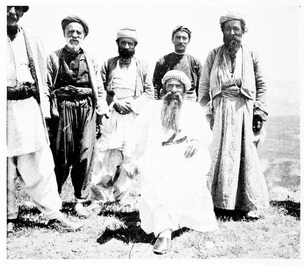 [163] In the photograph ’Alî Beg is seated and the ḳawwâl stands to the right of him. The figure on the left is the Christian secretary, and the close-shaven man behind the beg is Fattûḥ.