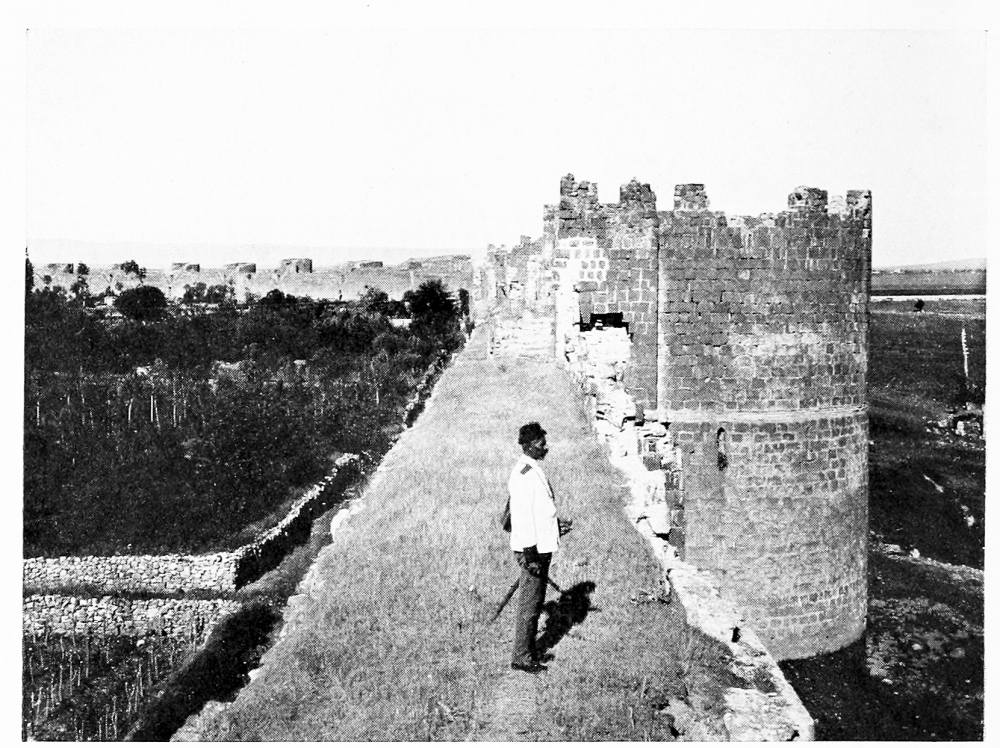 [218] Melitene does not appear to have been in existence in Strabo’s time, for he says that there were no towns in the fruitful plain, but only strongholds upon the mountains (Bk. XII. ii. 6). Procopius states that it was raised by Trajan to the dignity of a city, whereas before it had been nothing but a square fortification on low ground (Palestine Pilgrims’ Text Society Edition, p. 82). Diocletian made it the capital of Armenia Secunda (Ramsay: Historical Geography, p. 313); it was the centre of the military roads guarding the frontiers of the Roman empire towards the Euphrates, and the standing camp of the XII Legion, Fulminata (id. p. 55). With this increase of importance it outgrew, according to Procopius, its former limits, so that the people built over the plain “their churches, the dwellings of their magistrates, the market-place and the shops of their merchants, the streets, porticoes, baths and theatres, and all the other ornaments of a large city.” Melitene was thus composed mostly of suburbs until Justinian surrounded it with a wall. There must, however, have been cities in the plain, of which Strabo knew nothing, long before Trajan’s time, as is proved by existing mounds, and Pliny seems to have preserved a dim memory of these when he speaks of Melitene as having been founded by Semiramis (Bk. VI. ch. iii.).