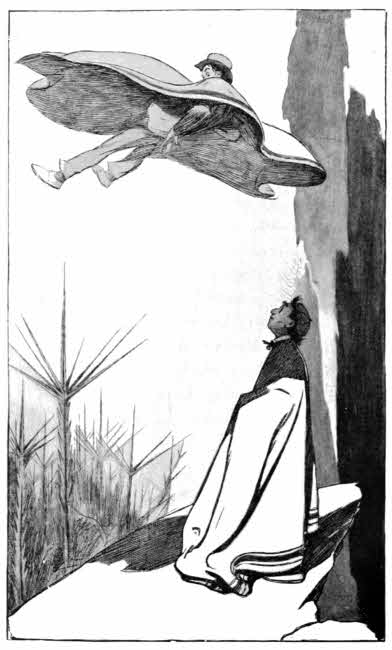 “I must confess that all this multitude made me feel extremely shabby and unworthy. I was unshaven and unkempt; I had brought no razor; I had a coarse beard over my mouth. On earth I have always been inclined to despise any attention to my person beyond a proper care for cleanliness; but under the exceptional circumstances in which I found myself, representing, as I did, my planet and my kind, and depending very largely upon the attractiveness of my appearance for a proper reception, I could have given much for something a little more artistic and dignified than the husks I wore. I had been so serene in the belief that the moon was uninhabited as to overlook such precautions altogether. As it was I was dressed in a flannel jacket, knickerbockers, and golfing stockings, stained with every sort of dirt the moon offered; slippers (of which the left heel was wanting), and a blanket, through a hole in which I thrust my head. (These clothes, indeed, I still wear.) Sharp bristles are anything but an improvement to my cast of features, and there was an unmended tear at the knee of my knickerbockers that showed conspicuously as I squatted in my litter; my[321] right stocking, too, persisted in getting about my ankle. I am fully alive to the injustice my appearance did humanity, and if by any expedient I could have improvised something a little out of the way and imposing I would have done so. But I could hit upon nothing. I did what I could with my blanket—folding it somewhat after the fashion of a toga, and for the rest I sat as upright as the swaying of my litter permitted.