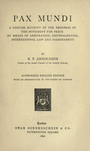 I cannot therefore but hope that the Essay of Mr. Arnoldson, which gives substantial evidence of the reality and growth of this movement towards Peace, will confirm in courageous and patient labour for an assured end all who join in the prayer that it may please God "to give to all nations unity, peace, and concord."