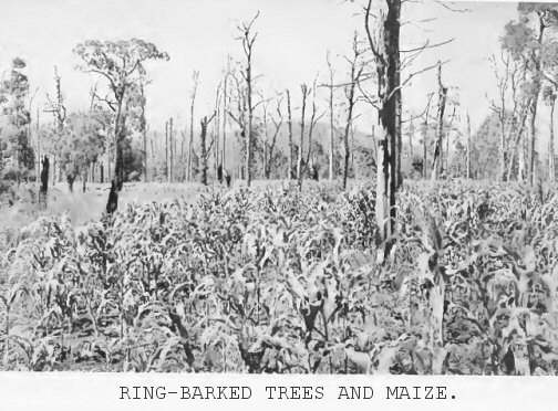 Ring-barked trees and maize |