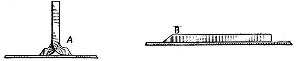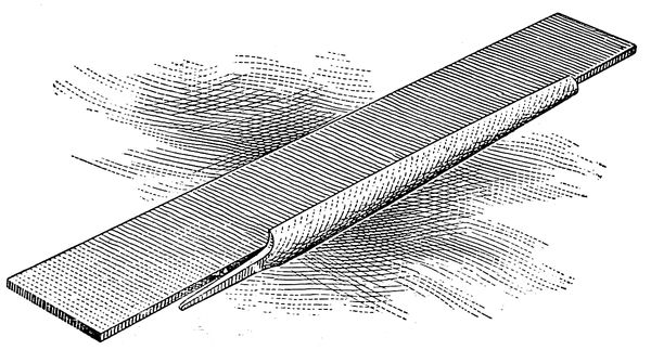 Fig. 39.—(A) Strap Split and Bent in Alternate Directions. (B) Bevel End of Strap.